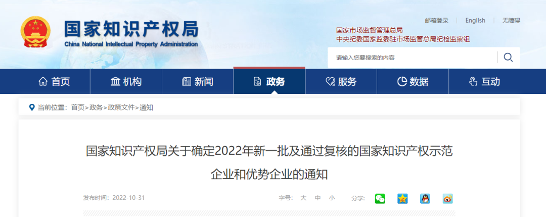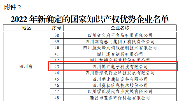 10月31日,国家知识产权局发布《关于确定2022年新一批及通过复核的国家知识产权示范企业和优势企业的通知》,J9九游会电子成功获评“2022年度国家知识产权优势企业”。